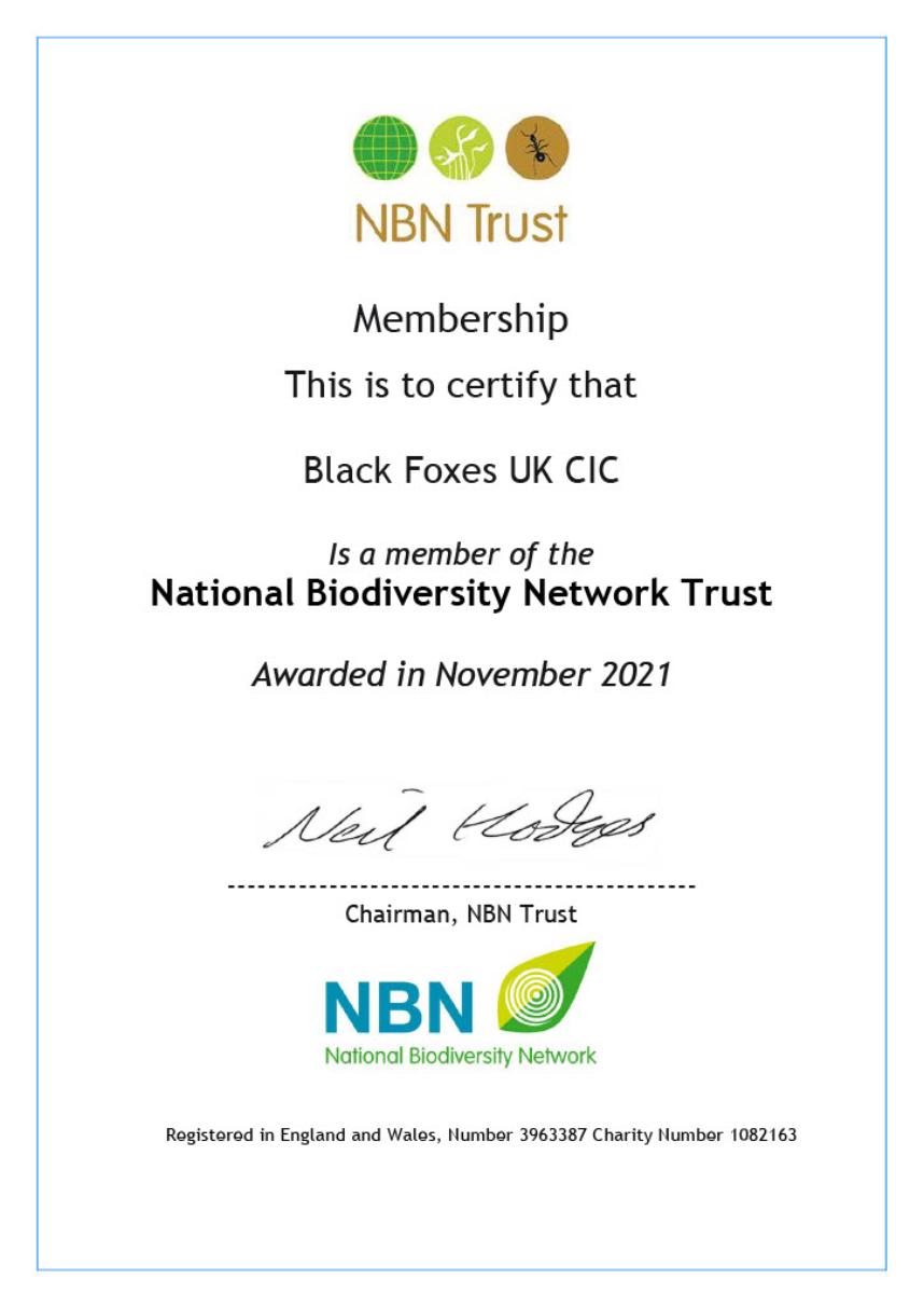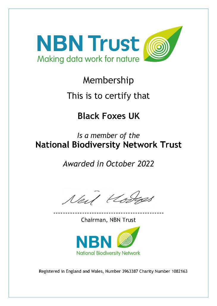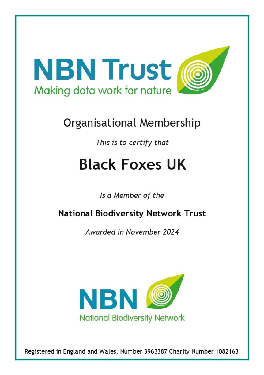 In November 2020, Black Foxes UK became members of the National Biodiversity Network (NBN) and in August 2023, we moved our reporting system over to iRecord, allowing us to collaborate and share data with other organisations through the NBN Atlas, increasing the impact of our citizen science projects.