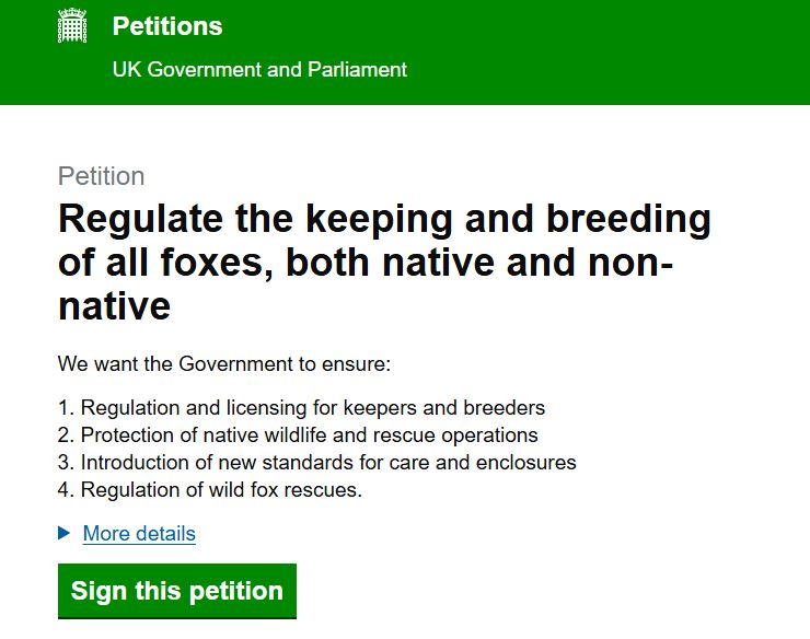 Sign the petition: Regulate the Keeping and Breeding of both Native and Non-Native Foxes