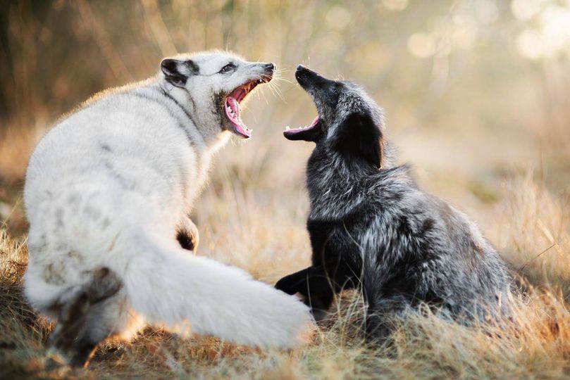 All foxes have unique personalities. Some foxes enjoy the company of others and will form stable social bonds, some do not. Some foxes are bold, while others are much more timid. While silver foxes are social creatures, in free-living environments (such as those at sanctuaries, breeders, educational zoo's and attractions, they retain their solitary predatory instincts and can be divided into those who prefer to form social bonds and those that prefer to remain solitary, with their own individual territory.