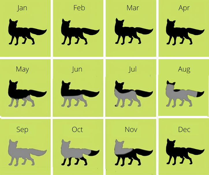 Like wild foxes, silver foxes go through a moulting season each year. Silver foxes were originally bred for the fur trade and have developed much thicker and fluffier coats as a result of the selective breeding, which can be a handful when it comes out in a moult, I recommend investing in a good brush, both for the fox and your floor! Alternatively, hand-plucking the moulting clumps of fur can be just as effective.